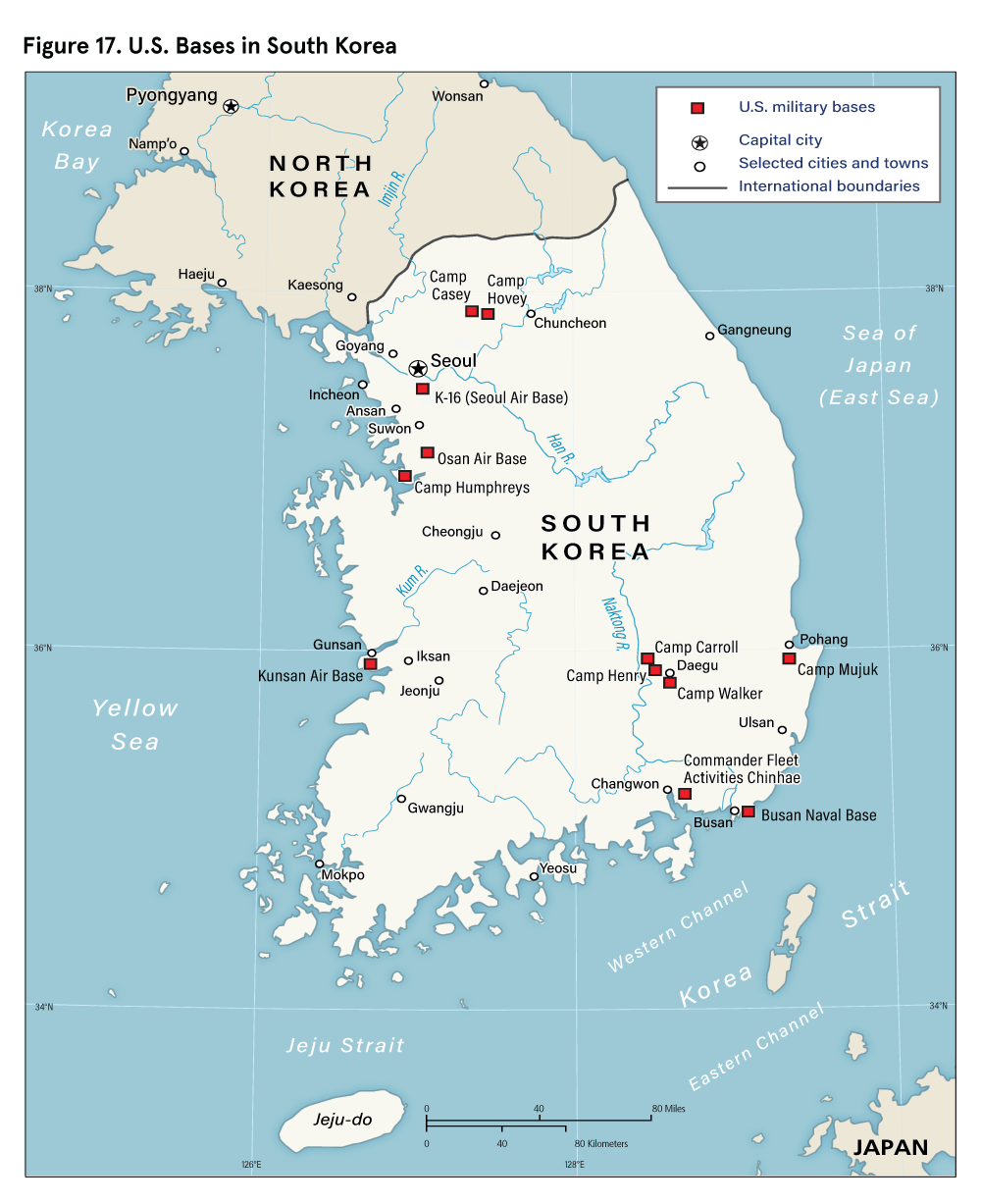 South Korea is home to large numbers of U.S. forces and has its own offensive capabilities. Those capabilities are directed against North Korea, however, and Seoul has historically been reluctant to countenance providing military support to the United States in a conflict with China. The Philippines is also a somewhat important partner due to proximity to Taiwan, but its own military capabilities are limited.
