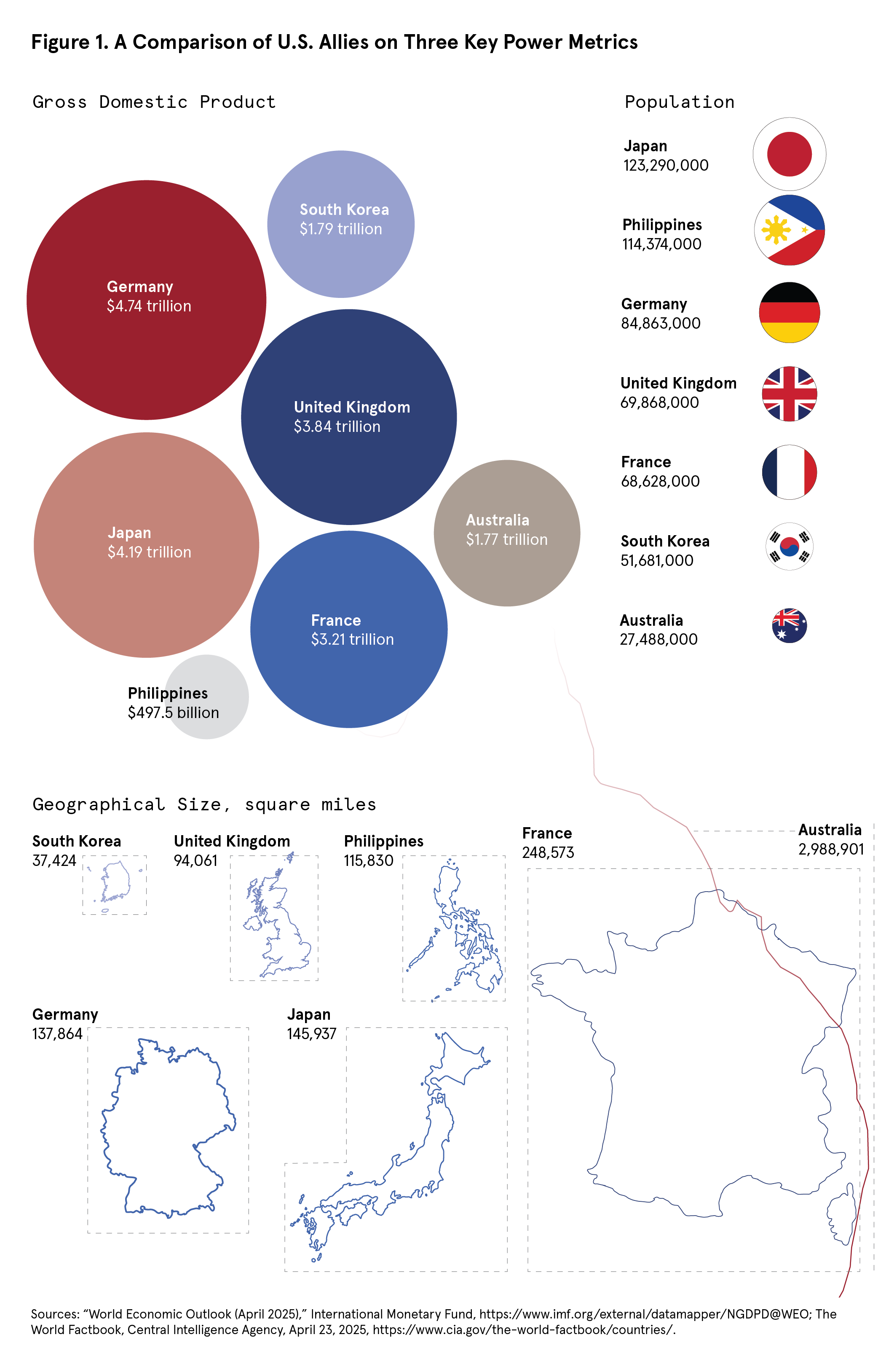 As of 2025, allied ability to meaningfully contribute to U.S. objectives with China thus varies substantially.